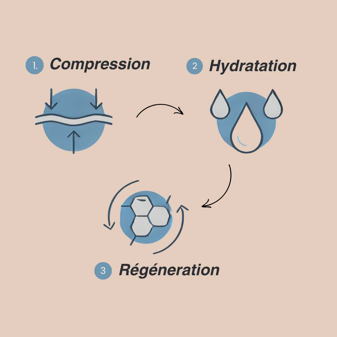 3. Stimulation & régénération ⚡ — La combinaison de la compression et de l’occlusion stimule la microcirculation, favorisant l’apport en oxygène et en nutriments essentiels. Ce processus soutient la régénération naturelle de la peau et stimule la production de collagène et d’élastine. Résultat : une peau plus lisse, plus ferme, plus éclatante.